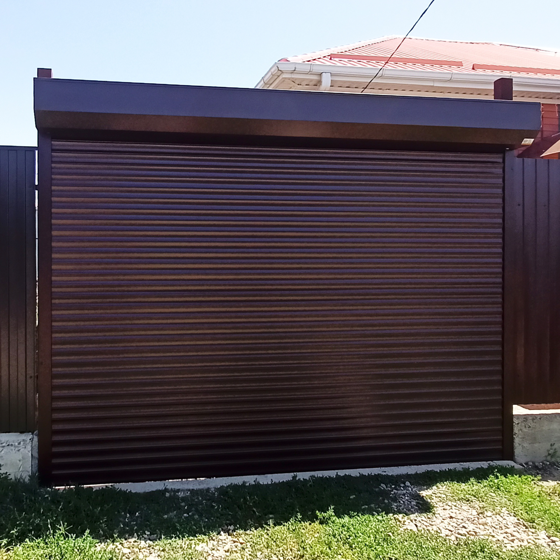 Мы не рекомендуем устанавливать ворота темного цвета на солнечной стороне. Это связано с тем, что поверхность темных оттенков нагревается быстрее, чем светлых. Из-за высокой разницы температуры внешней и внутренней стороны сэндвич-панелей полотно может начать выгибаться или ломаться.