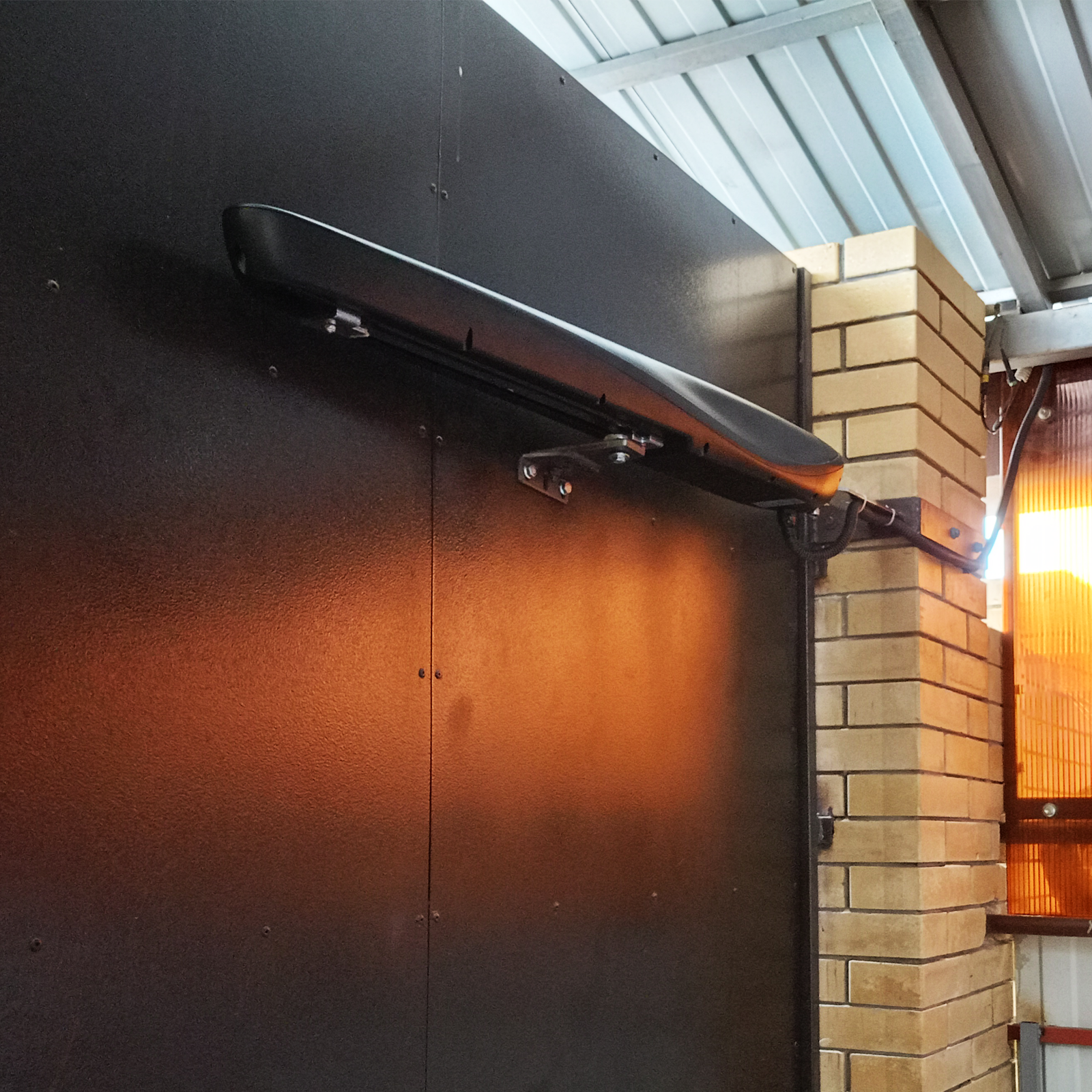 Ворота темного цвета не рекомендуется устанавливать на солнечной стороне. Это связано с тем, что поверхность темных оттенков нагревается быстрее, чем светлых. Из-за высокой разницы температуры внешней и внутренней стороны сэндвич-панелей полотно может начать выгибаться или ломаться. Если клиент хочет установить темные ворота на солнечной стороне здания, мы всегда рекомендуем ему дополнительно установить усиливающие профили, чтобы избежать возможных дефектов.